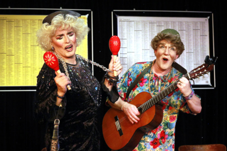 Wer kennt und liebt sie nicht, die beiden „alten Weiber“ der Näh- und Singegruppe „Nähen für den Hunger“?! Meist sind sie respektlos, manchmal ein wenig anrührend, aber meistens brachial komisch. Und immer sind die Gitarre, ein Tamburin und die obligatorische Flasche Eierlikör mit im Gepäck. Denn singen tun die beiden einfach himmlisch. Und wenn die alte Gladwitz vor lauter Gebissen die Wanderhure mit der Sexpuppe verwechselt, dann singen Asylanten das Lieblingslied der Kanzlerin, träumen von roten Lippen und rufen im Chor: „Eierlikör für alle!“