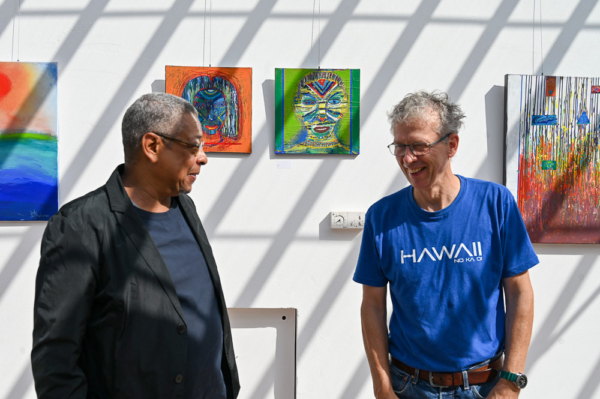 Zaki Al-Maboren lebt in Kassel und stammt aus dem nubischen Teil des Sudans, der schon immer Schnittstelle arabischer, altägyptischer und islamischer Kulturen war. Seine Bilder, in denen er auch gerne mit Gold arbeitet, spielen mit den Urkräften des Kosmos. Die Gemälde erstrahlen in einem farbenprächtigen Glanz und vermischen orientalische und europäische Formensprachen. Zaki Al-Maboren verbindet durch seine Person und seine Werke Kulturen miteinander, fordert zum Dialog auf und zeigt den Reichtum, der in der Vielfalt steckt. Die Ausstellung bleibt bis zum 25. September geöffnet.